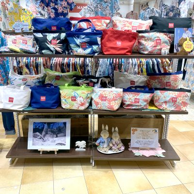 かりゆしウェアだけじゃなく、かりゆしウェアの生地を使った小物も充実しています♪