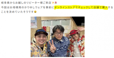 今回はお母さま用のかりゆしウエアを事前にオンラインストアでチェックして店舗で購入することを決めていたそうです