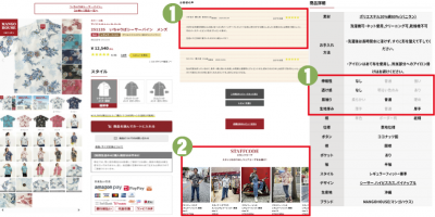 ①商品ごとに実際のお客様の口コミや着用感を確認できる