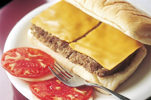 名物アメリカンサイズのジャンボチーズバーガーはUP-KITTYで食べられます。