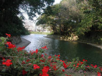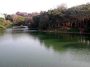 龍潭池からは首里城を見ることもでき、特にここから見る夜の首里城はライトアップされていて