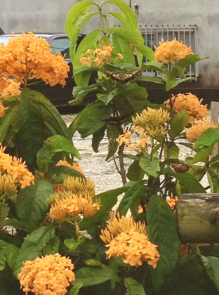 最近、山吹色のサンダンカを見かけました!