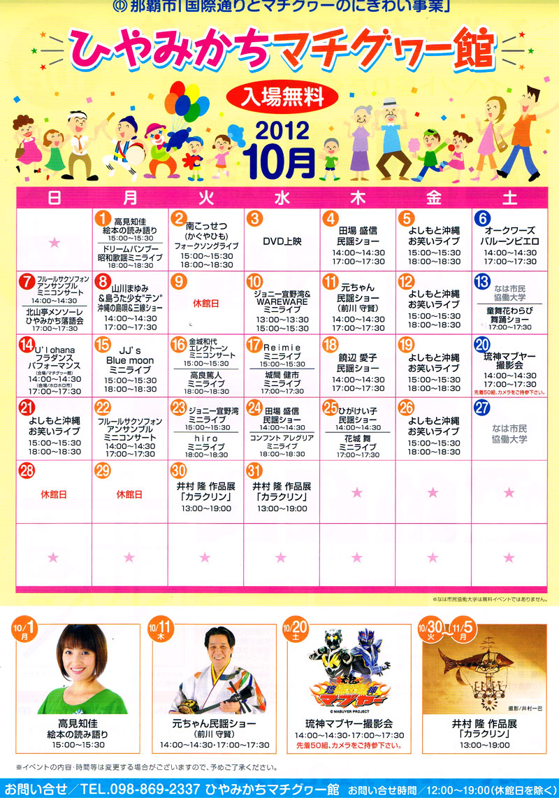 10月はミュージックライブやお笑いライブ、