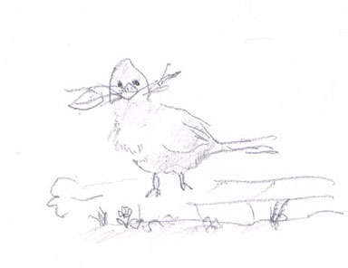 しばらくしてお店を開けて掃除をしていたとき、ふと外をみると小枝を沢山くわえた小鳥がこっちを見ていました。