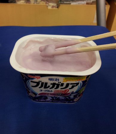 まあ お箸でヨーグルトなんてめったにない経験なんで