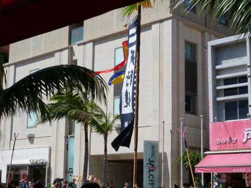 先程までは国際通り旗頭行列をしてました。