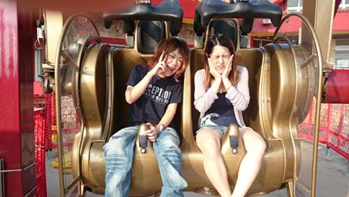 体験して一言「やばい」でしたっ笑 遊園地の大きい絶叫マシーンと違って小型な分早さとか回転がリアルで、絶叫系大好きな私でも恐すぎてずっと目つぶってて何もみてません笑