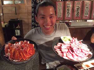 前から2人は「サトサーン、焼肉!、、、ここ焼肉おいしいですか?」などと