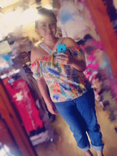 今回リメークしたものはお母さんのアロハシャツをオフショルダーブラウスに変身しました[sc_emoji code=”目がハート”]