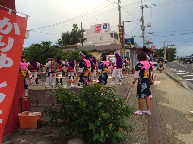 ウンケーの日、隣のダイビングショップに太田区青年会の皆さんがエイサーで回ってきてました。