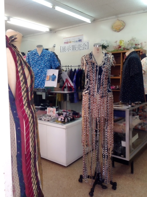 生徒さんの手作りの小物とかりゆしウエアが展示されています 😀 無料ドリンクもありますよ~ 明日までになりますので、是非見に来てくださいね。