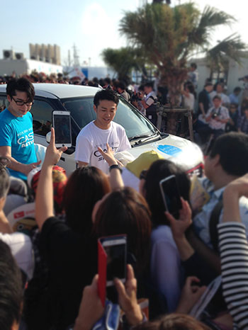 会場はステージ付近のレッドカーペットに人が集まっていましたが、そこ以外にも屋台などもあり賑わっていました。(写真はステージとレッドカーペット付近を引きで撮りました。逆光パネー。)