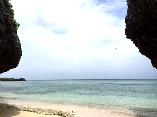 観光地化されていない静かな海は透明度が高く、目の前に広がるエメラルドグリーンの水平線に感動。
