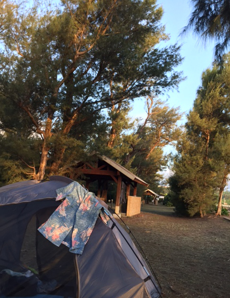 最後に朝方、テントとかりゆしウェアでパシャリ★