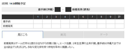 今日、14:00~【嘉手納(沖縄)】VS【前橋育英(群馬)】