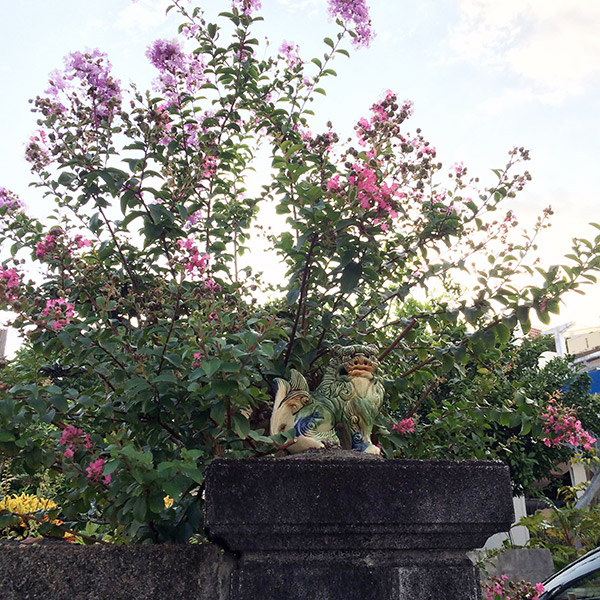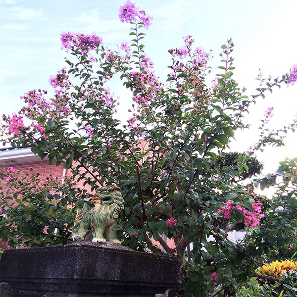 サルスベリ(百日紅)とシーサー 小禄店:いらみな