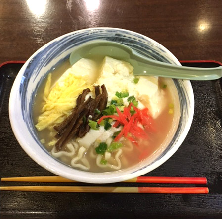 沖縄そばの上にゆしどうふをのせた『ゆしどうふそば』にしました!