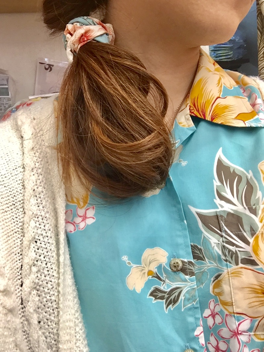 そんなときは、マンゴハウスの店舗で販売しているかりゆしシュシュが、万能なんです 😆