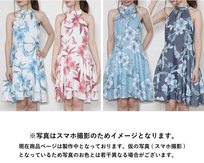 アロハ 新作ホルターネックワンピース ディテール かりゆし アロハ 新作ホルターネックワンピース カラーバリエーション かりゆし