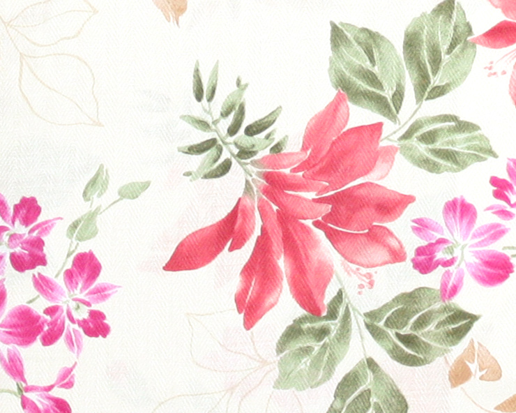 右のお嬢さんは生地が柔らかい織で沖縄の県花『デイゴ』の花を主役に描いた『リアルデイゴ』