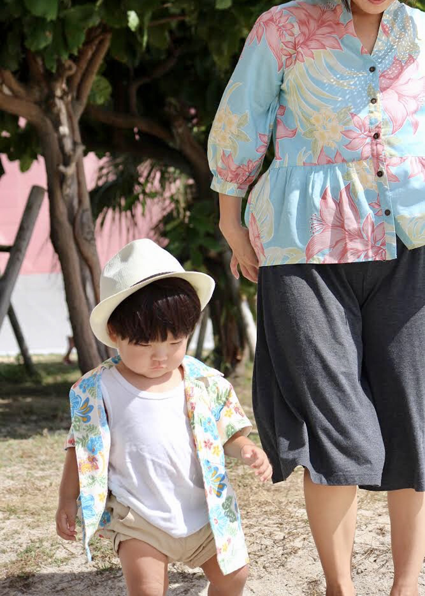 1番の楽しみは、子どもとマンゴハウスの沖縄アロハを着てお出かけする事!