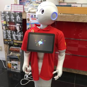 スリッパに履き替え、ペッパー君とスッパイマンがお出迎え!