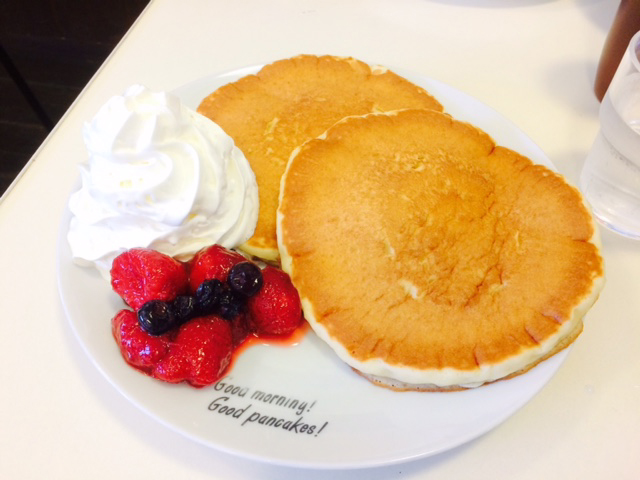 パンケーキも程よい甘さで、ストロベリーと一緒に食べるとより美味しさが増してとても美味しかったです(*´u`*)