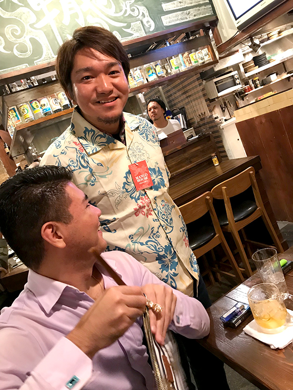 プレゼントしたのは闘牛トライバルという商品で、カッコイイ闘牛をトライバルのデザインで表現した、個性溢れるデザインと遊び心が爽やかに引き立つアロハシャツ(かりゆしウェア)です。