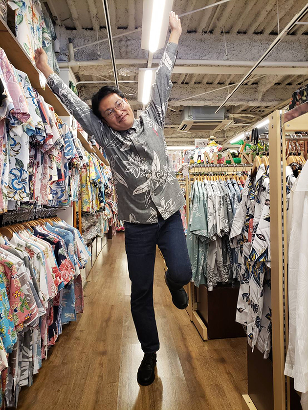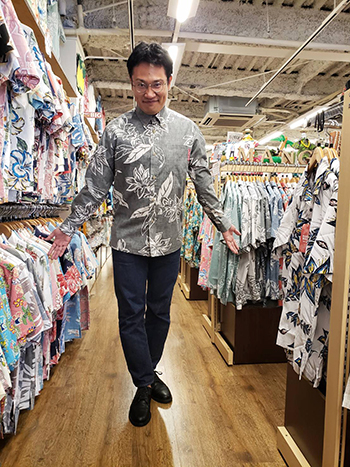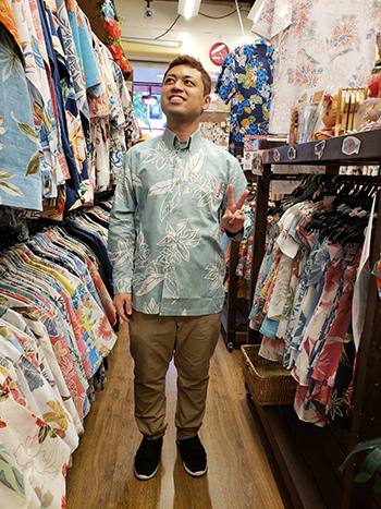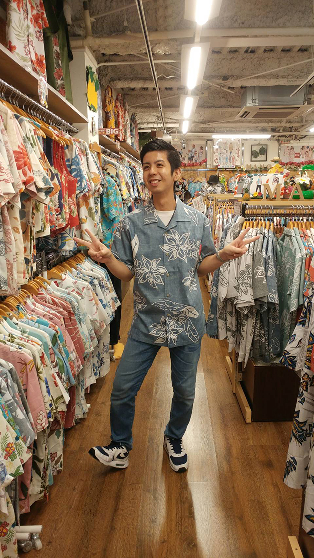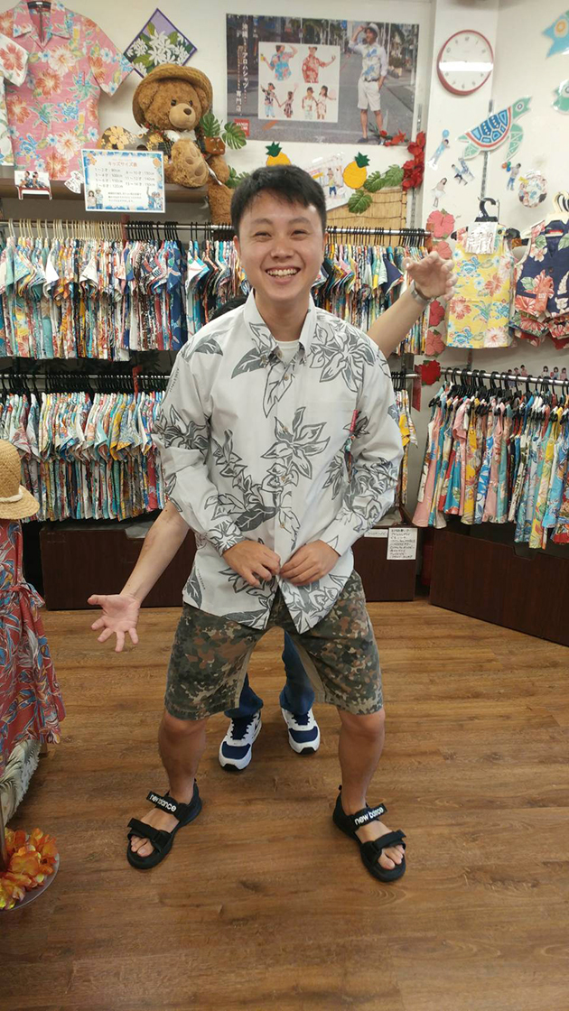 ブラックは與儀さんに!普段から着ていらっしゃるので長袖シャツで♪かなりしっかりふざけてくれる與儀さん。ラスボスみたいじゃないですか!
