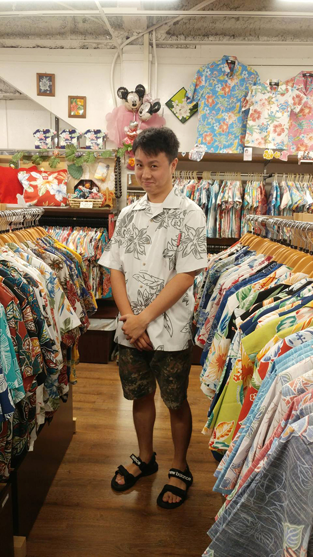 ブラックは與儀さんに!普段から着ていらっしゃるので長袖シャツで♪かなりしっかりふざけてくれる與儀さん。ラスボスみたいじゃないですか!