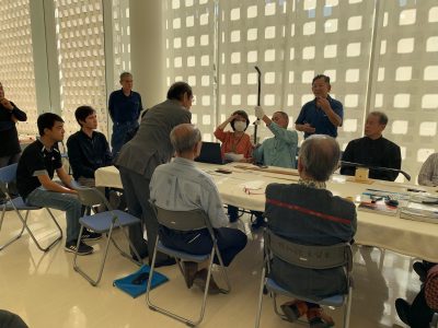待ってる間、何やら貫禄のある長老方が白い手袋で三線の柄を持ちいろんな角度からCHECKしたり、測量したり・・・
