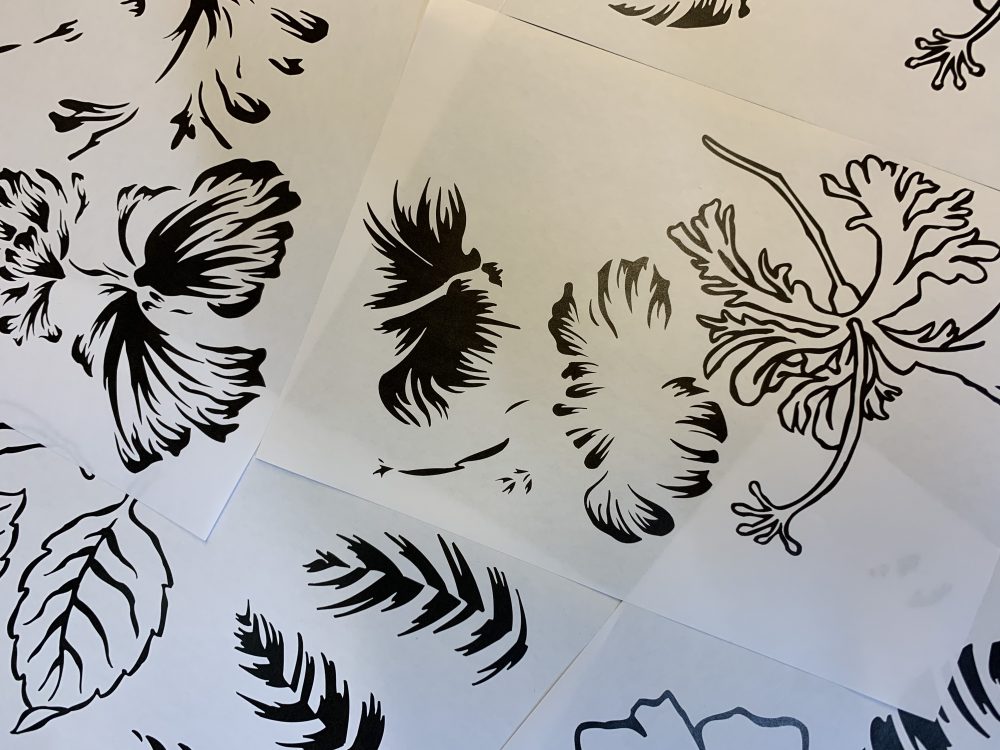 “様々な形を使ったハイビスカス。リアルなタッチで上品さと高級感が合わさり大人っぽさを演出。きっと衣類の主役になれる一着。”をキャッチコピーに南国代表柄にイシキアレンジ♪
