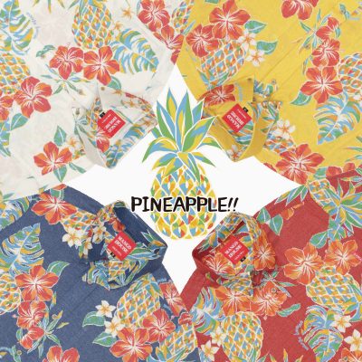 わんぱくパイン!か~わ~い~い~~!!カラフルでかわいい、ハッピーなパイン柄、楽しくアロハシャツを着たい人にぜひ着て欲しい!!ブログはこちら、商品ページはこちらからどうぞ♪