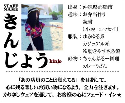 「ウワーかわいい!綺麗!!」「このシャツ絶対着たい!!」とお客様のココロが動くような、 それでいて夏の一着として寄り添えるようなデザインをしていきます♪あと、おしゃべりもだいすきです。話しかけられると止まりませんよ~~。
