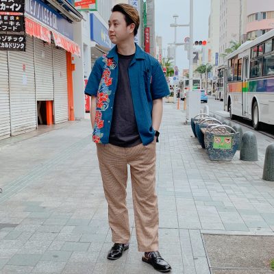 柄パンツと革靴で合わせた沖縄アロハ♪~【スタッフコーデ】~