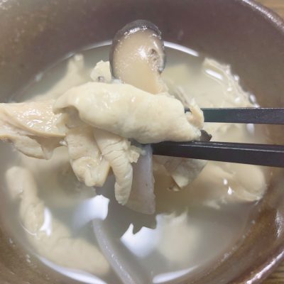 具になる内臓の風味はほとんど除かれ、どちらかと言えば鰹節出し汁のスープで煮込まれたモツの歯ごたえや食感を楽しむもので、昔沖縄では正月に備えて年末に豚を潰す習慣があるんだとか。
