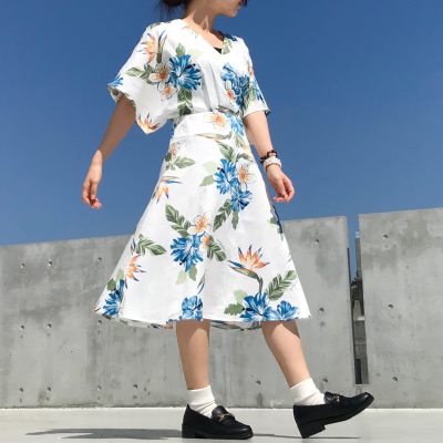 レトロな雰囲気もあるので、ローファーと合わせるのもいいですよね。ヒールでしか履けないワンピースは…私にはレベルが高いです。