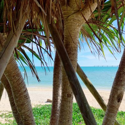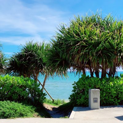 (アダンの木の隙間から見える海と空がとっても綺麗でした♪)
