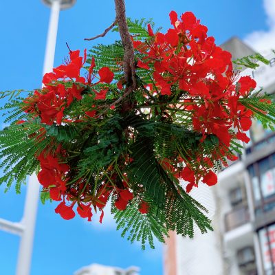 (オオゴチョウが満開で綺麗だったので撮影。)