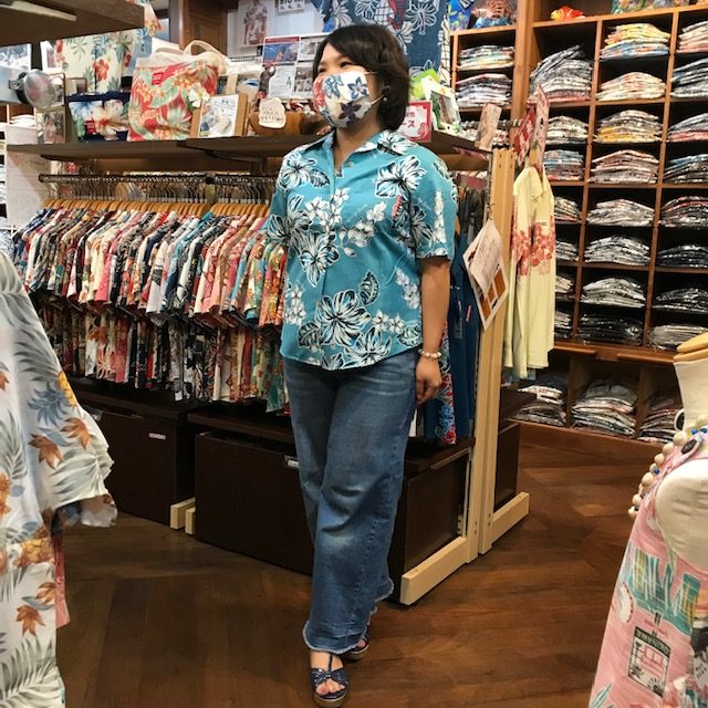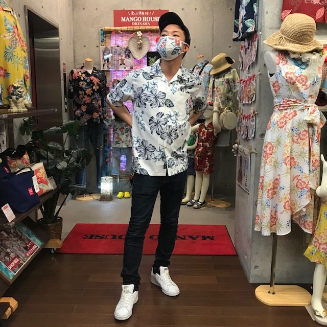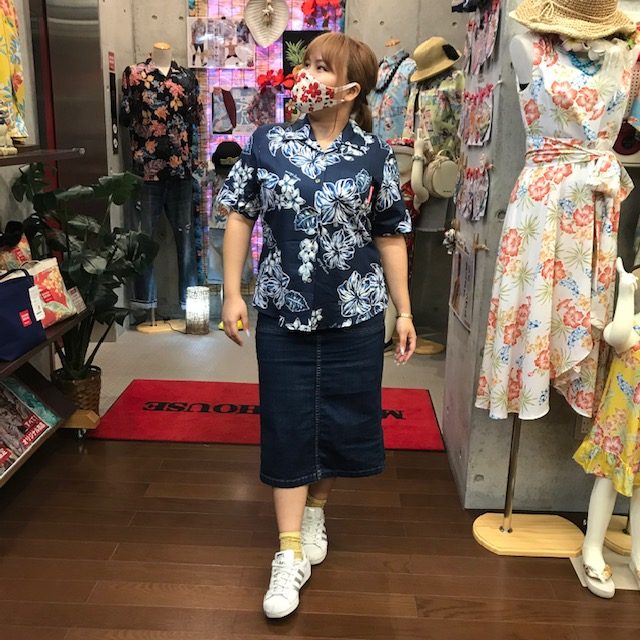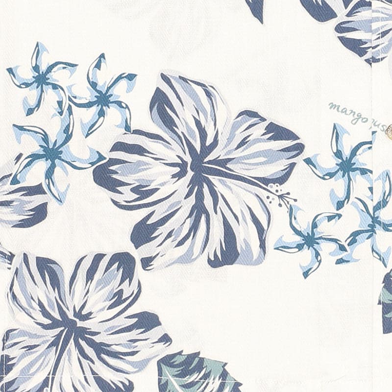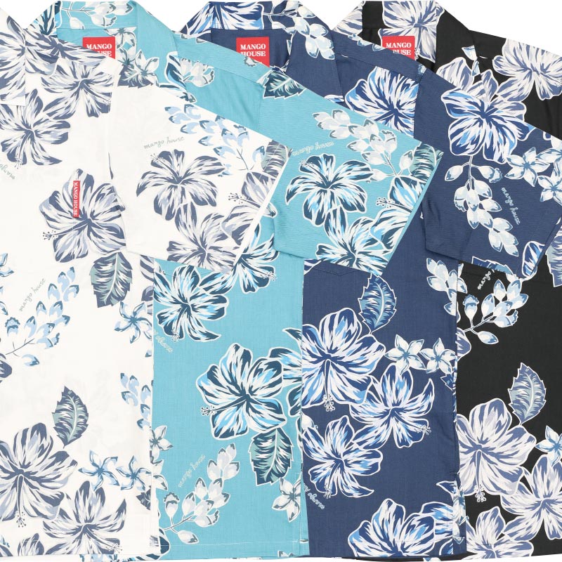 元気いっぱいハイビスカスを、その名の通り夢を見ているかのような、幻想的な雰囲気にしてみました。こんな雰囲気のシャツって、マンゴハウスの中では結構珍しいですよ!青い海と空が似合う、というよりは、木漏れ日そそぐ静かなやんばるの森に似合うようなデザインです。