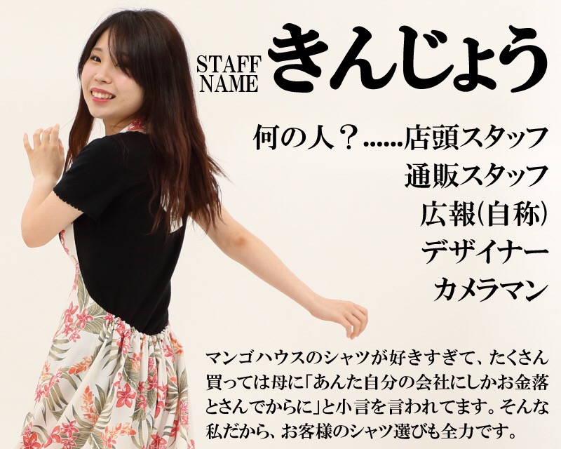 「ウワーかわいい!綺麗!!」「このシャツ絶対着たい!!」とお客様のココロが動くような、 それでいて夏の一着として寄り添えるようなデザインをしていきます♪あと、おしゃべりもだいすきです。話しかけられると止まりませんよ~~。