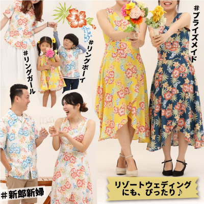 沖縄ハイビスカス柄かりゆしウェアワンピース!おそろいコーデもお任せ!夏色ハイビー