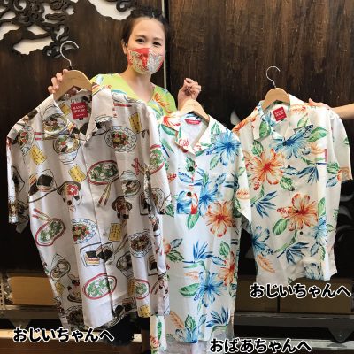 「おじいちゃんは何でも着る人で、新しいのもおもしろいのも好きだから、うちなーごはん着せたいな~(笑)おばあちゃんはロハスハイビーって感じ。あ、敬老の日だからこそおそろいもいいな…って考えたら、おばあちゃんに合わせておじいちゃんもロハスハイビーで、二人でおそろいもいいかも」