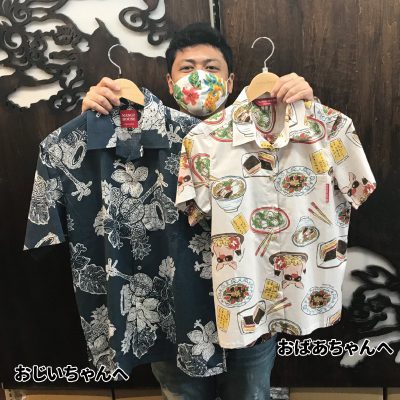 おじいちゃんには【うちなーごはん】&【ロハスハイビー】、おばあちゃんには【ロハスハイビー/チュニックシャツ】