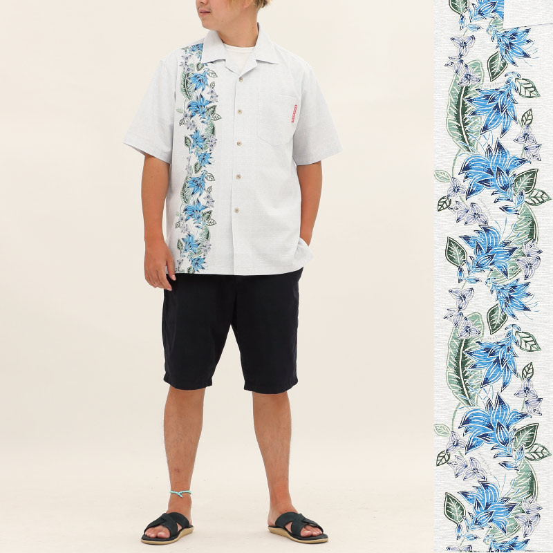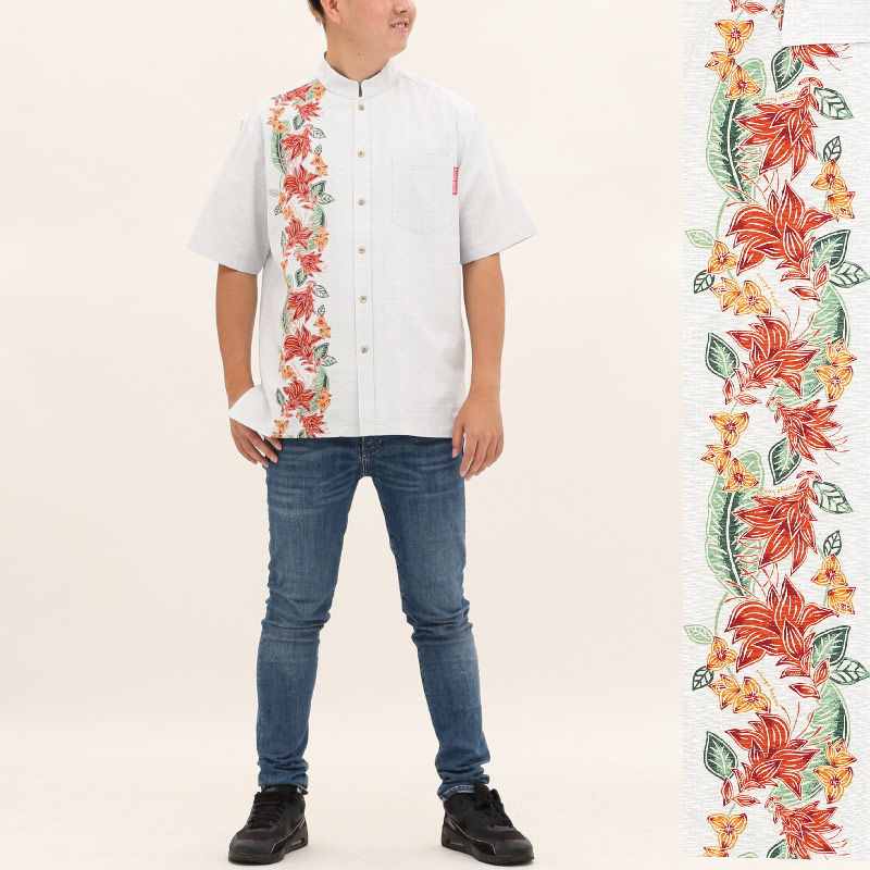 優しく&爽やかに華やぐ沖縄の紅型柄かりゆしウェア【紅型デイゴブーゲン】