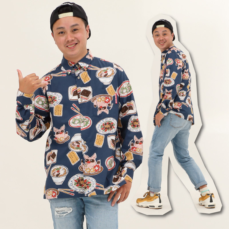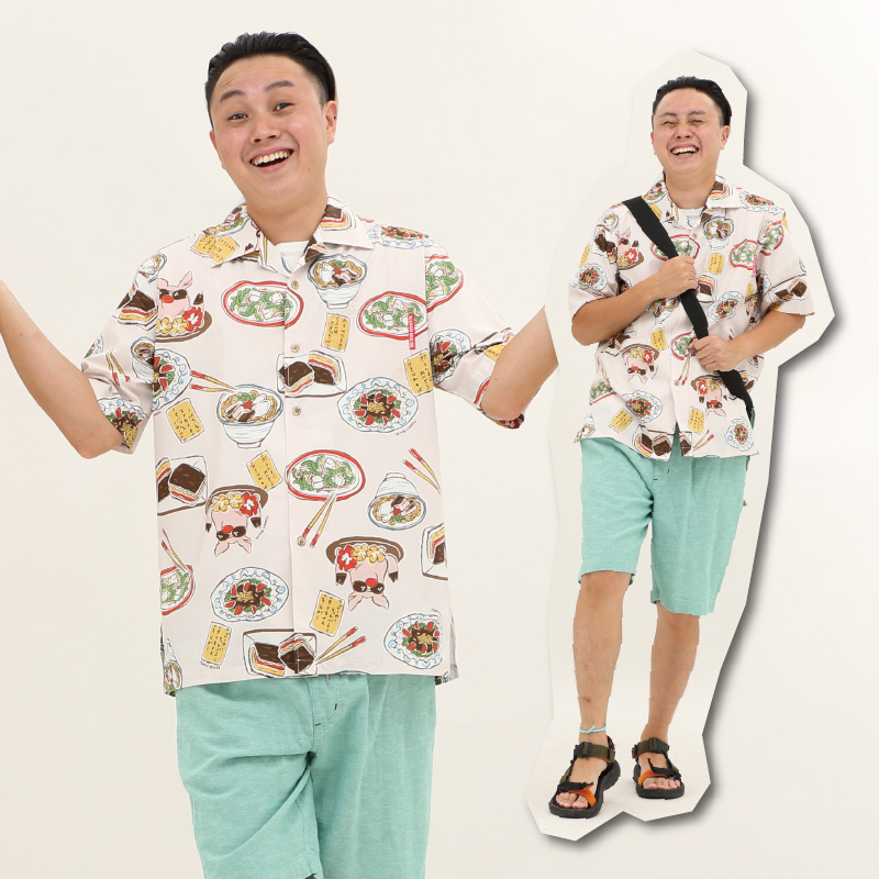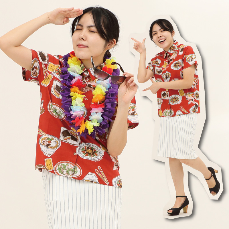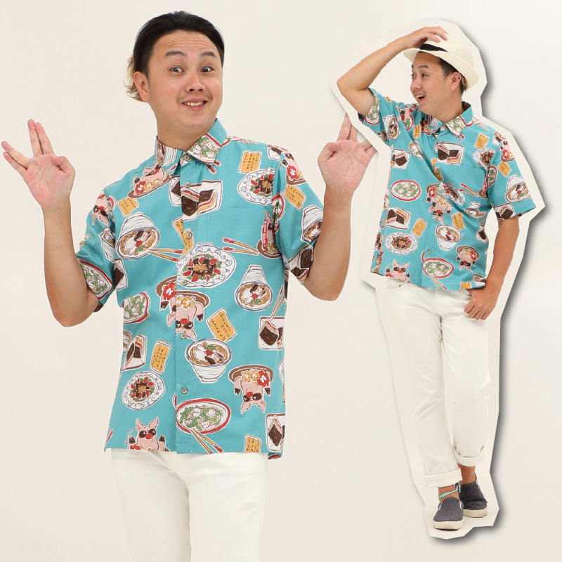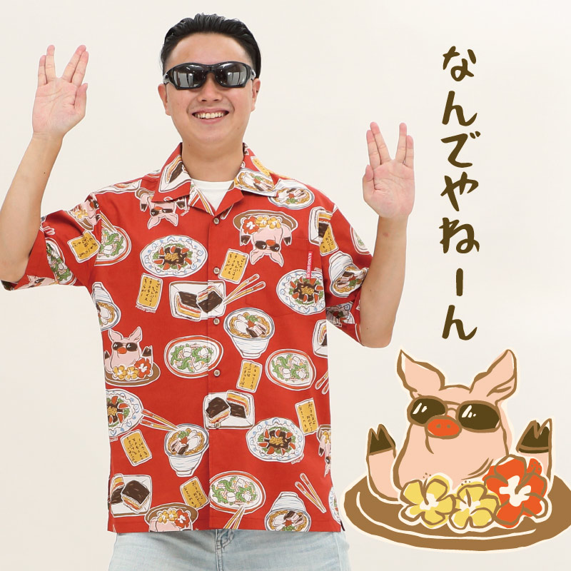 「なんでやねん」の沖縄料理柄かりゆしウェア【うちなーごはん】