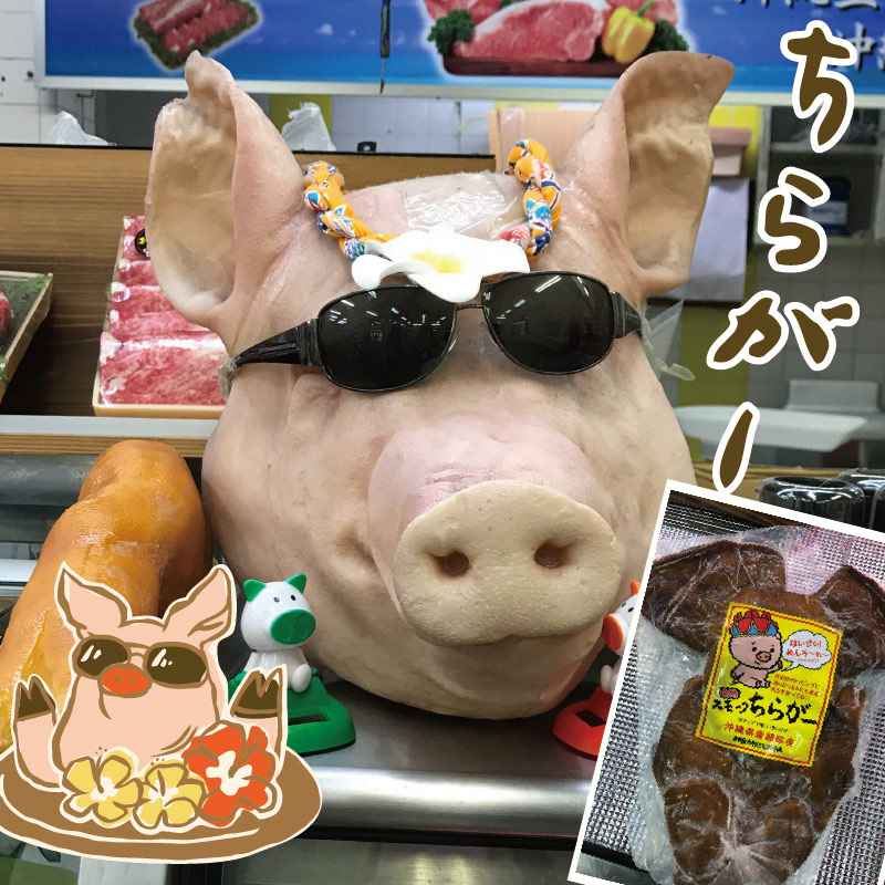 これは、沖縄県民にとってもレアじゃないでしょうか!描いておいてなんですが、多分、私食べた事無いかも…でも、ミミガー(豚の耳)だったら、給食でも出ていました。コリコリして美味しいですよ~♪
