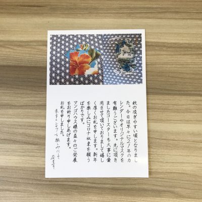 秋の凌ぎやすい頃となりました。今日は早々に21年のカレンダーやオリジナルマスクを有難うございます。