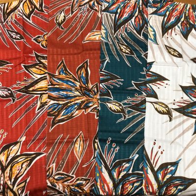 そこで、今回は2019年の私の商品4つの、「色作り」についてを振り返って呟いてみたいと思います。2019年の私の商品は、【クロトン大柄】【デイゴブーゲン】【うららかハイビ―】【三線ちゅらハイビ―】の4つです。