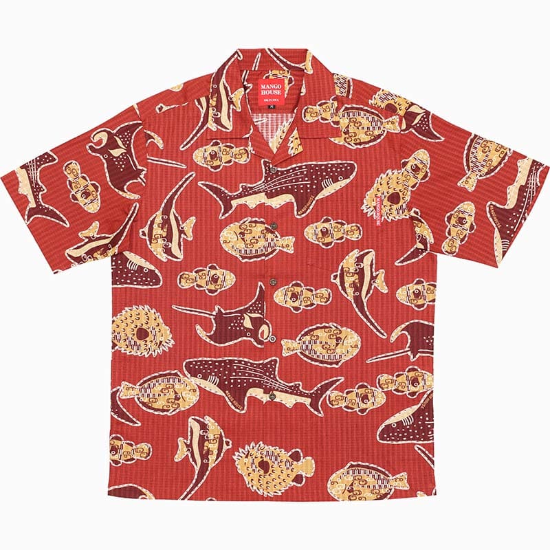 FC琉球のイメージカラー「赤」にちなんだ「赤」のかりゆしウェアの紹介。